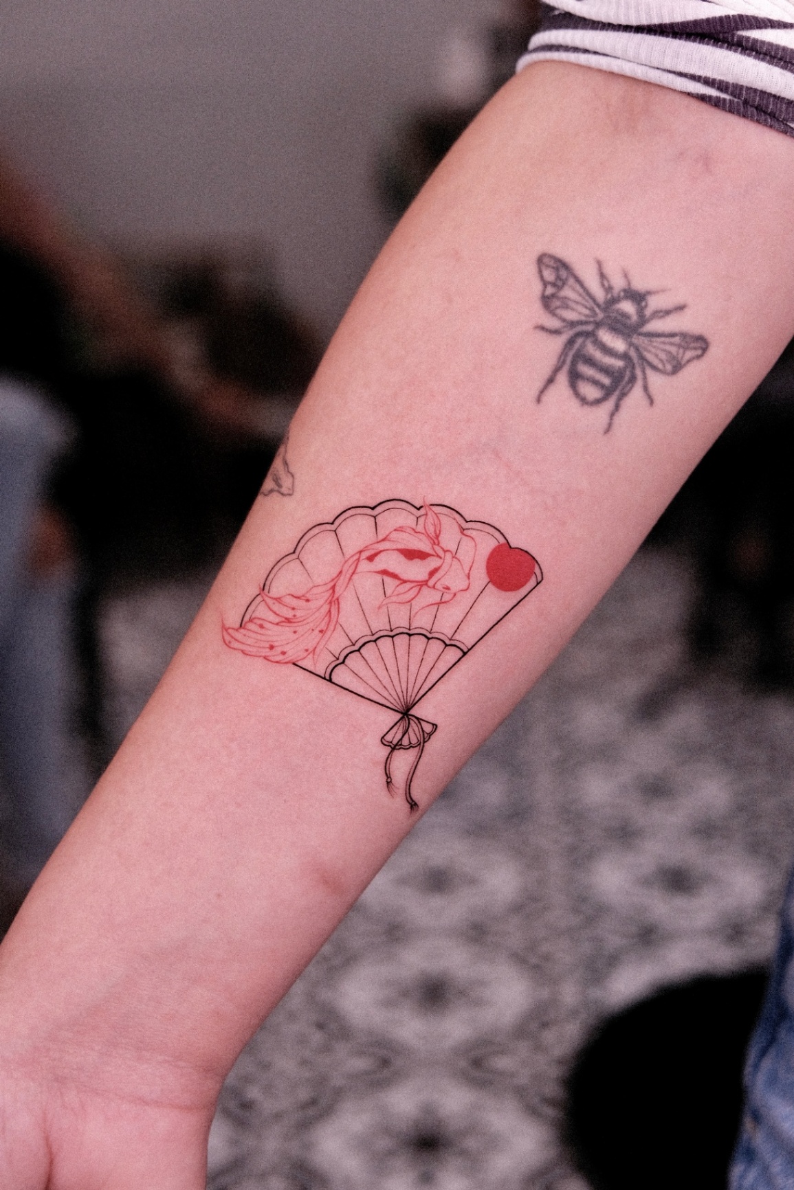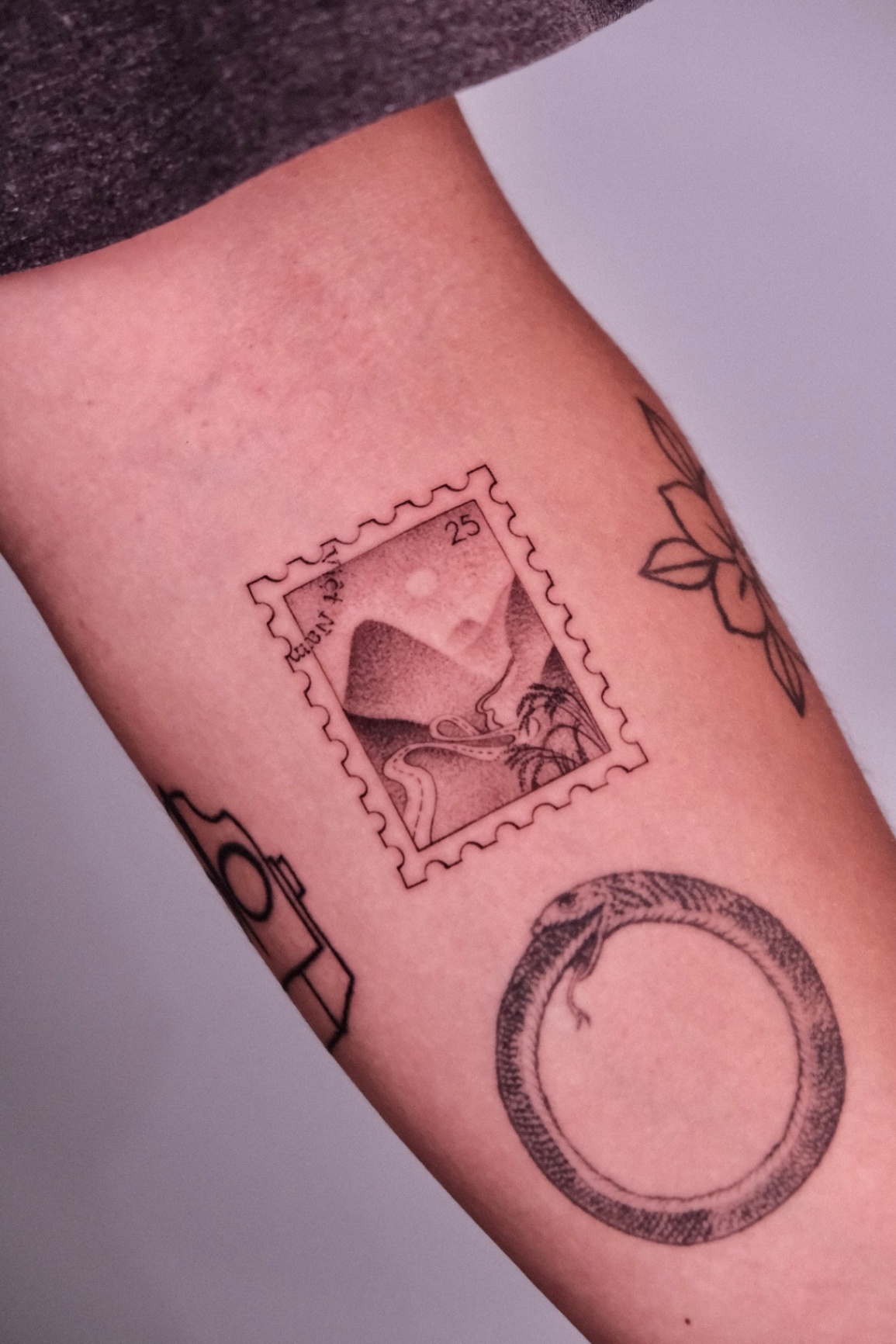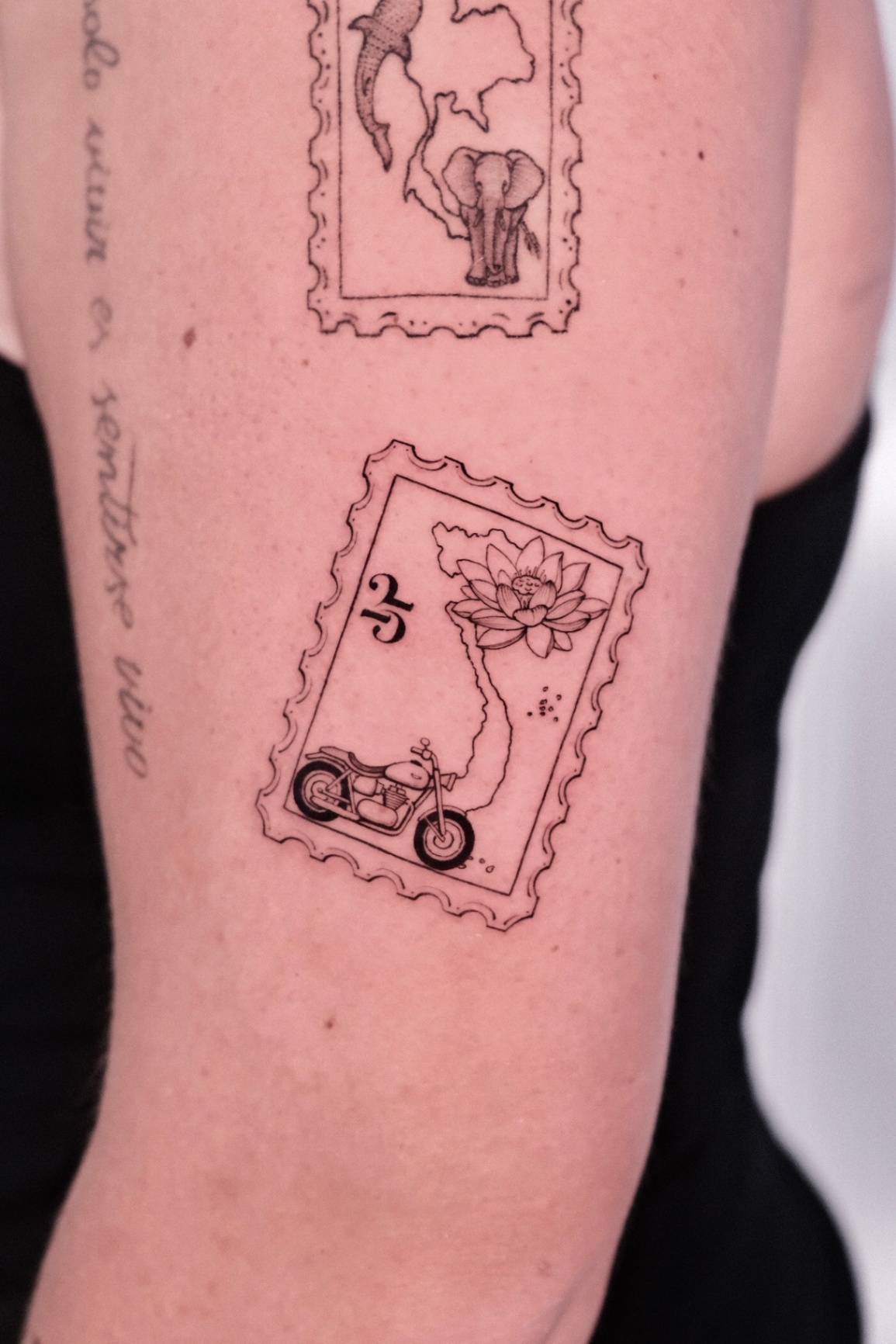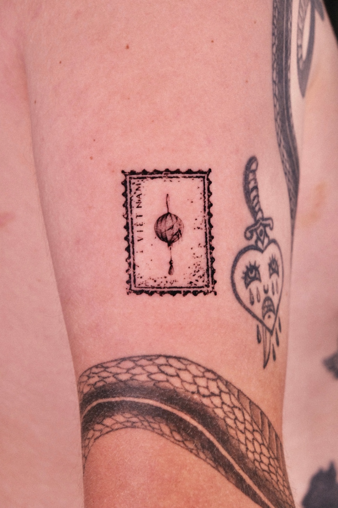 STAMP, LANTERN & HAND FAN tattoos focus on depth, shading, and contrast created with black ink and grey tones. This style emphasizes realism and smooth gradients, creating timeless designs with strong visual impact.