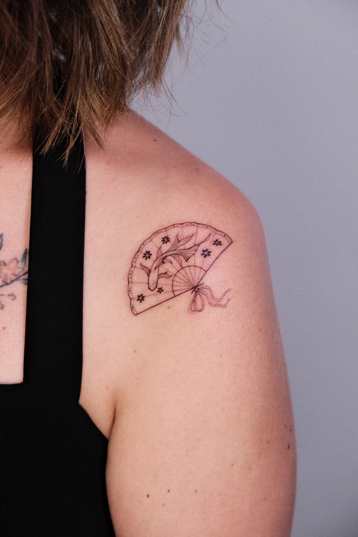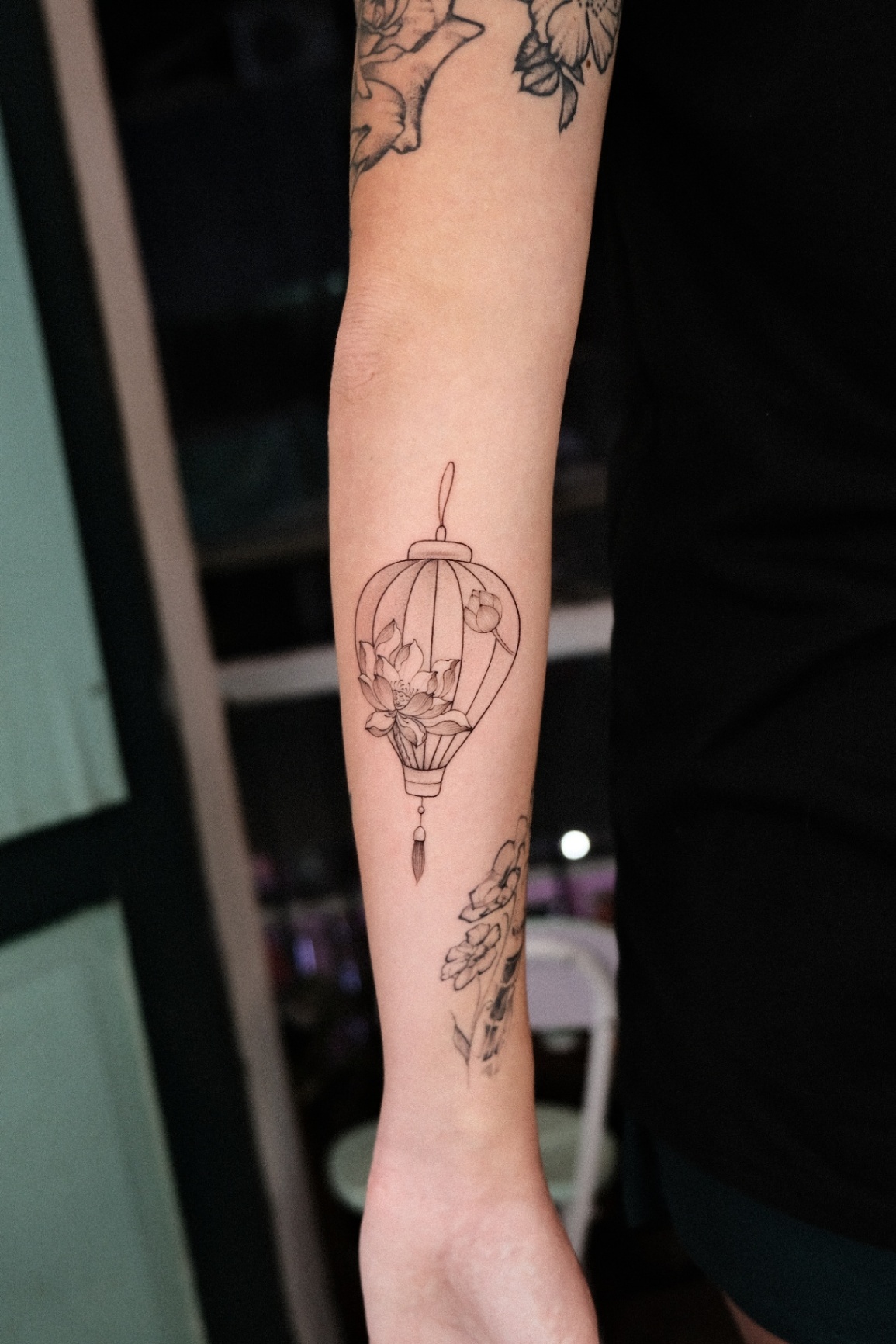 STAMP, LANTERN & HAND FAN tattoos focus on depth, shading, and contrast created with black ink and grey tones. This style emphasizes realism and smooth gradients, creating timeless designs with strong visual impact.