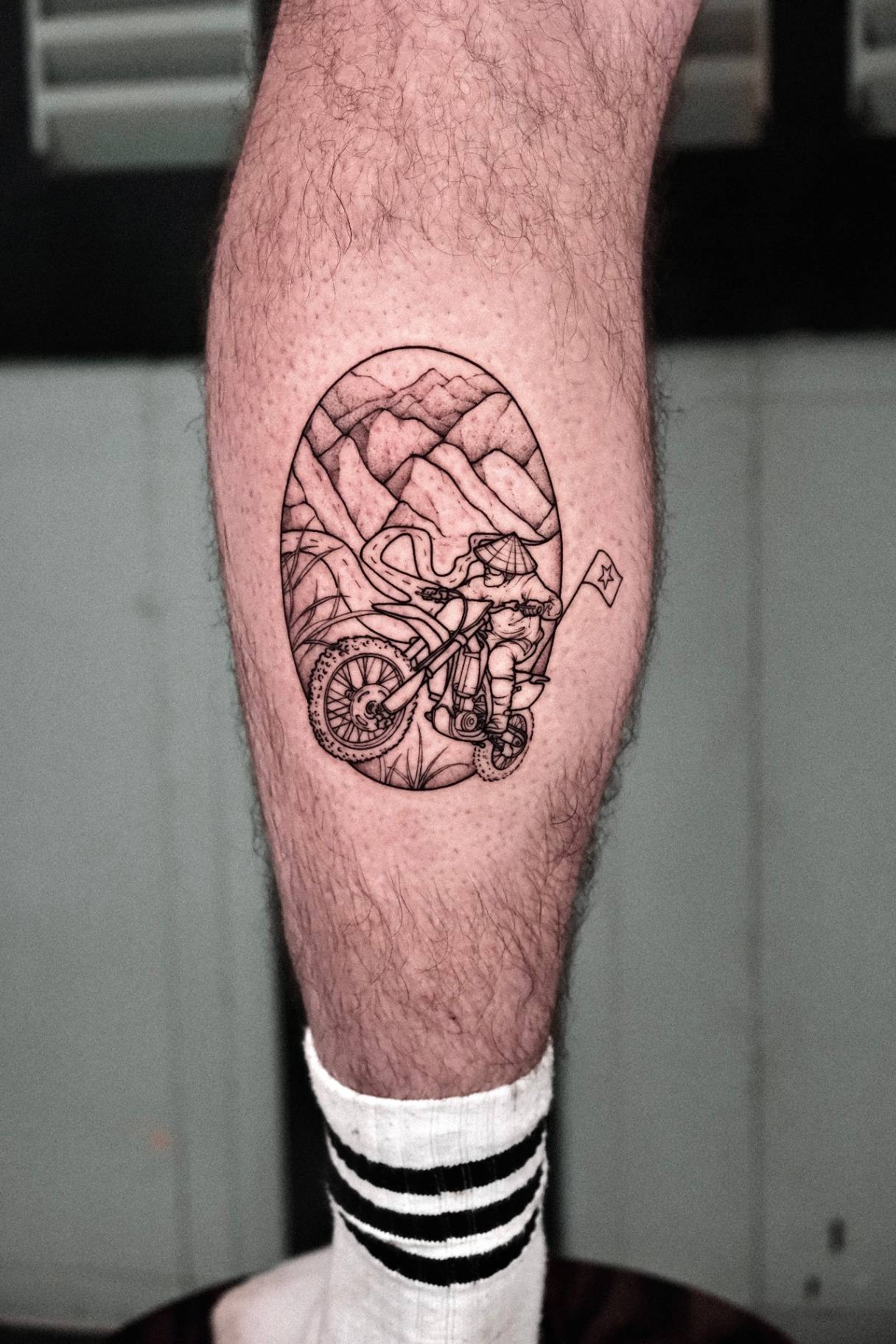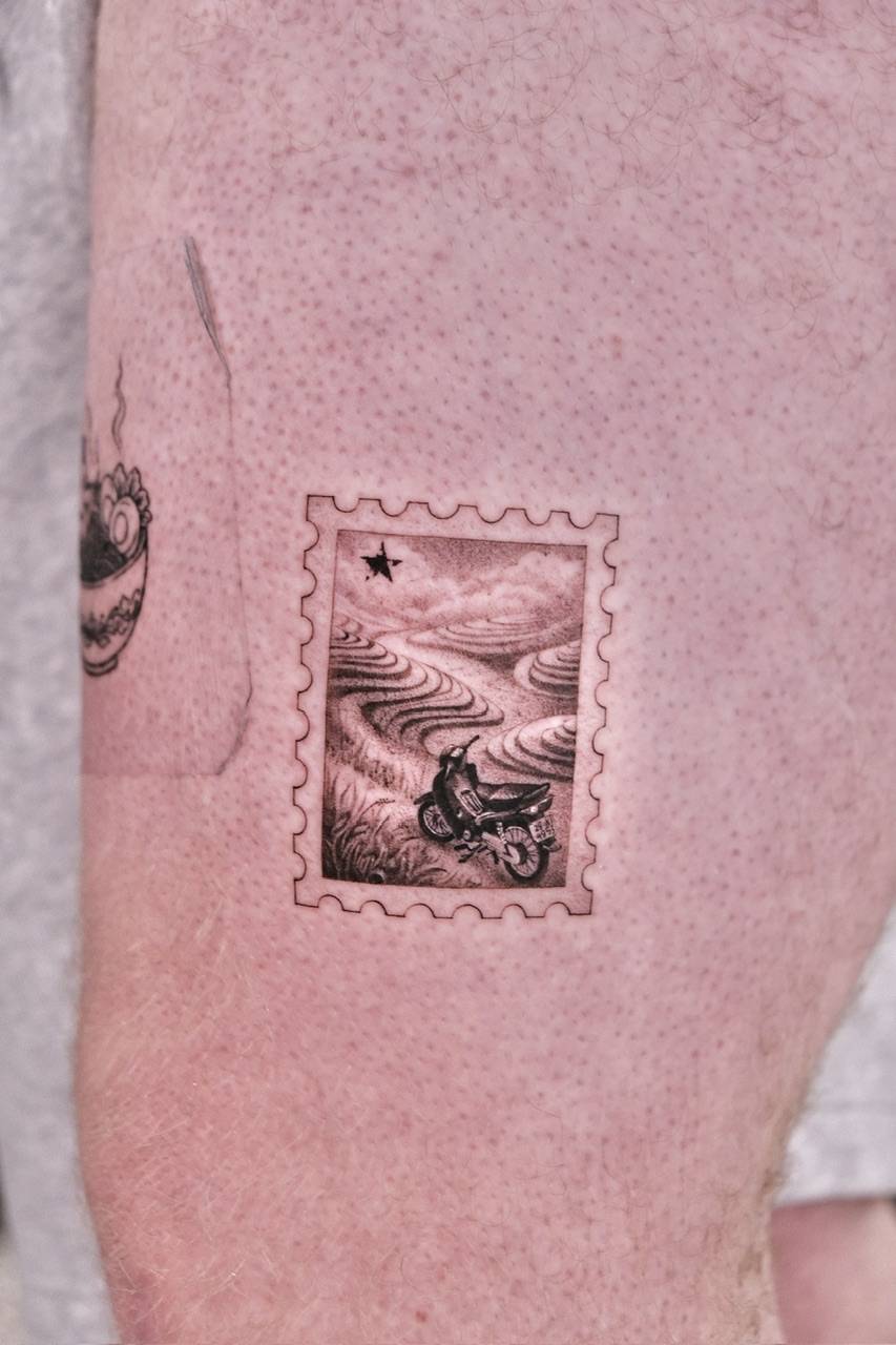 VIETNAM INSPIRED tattoos focus on depth, shading, and contrast created with black ink and grey tones. This style emphasizes realism and smooth gradients, creating timeless designs with strong visual impact.